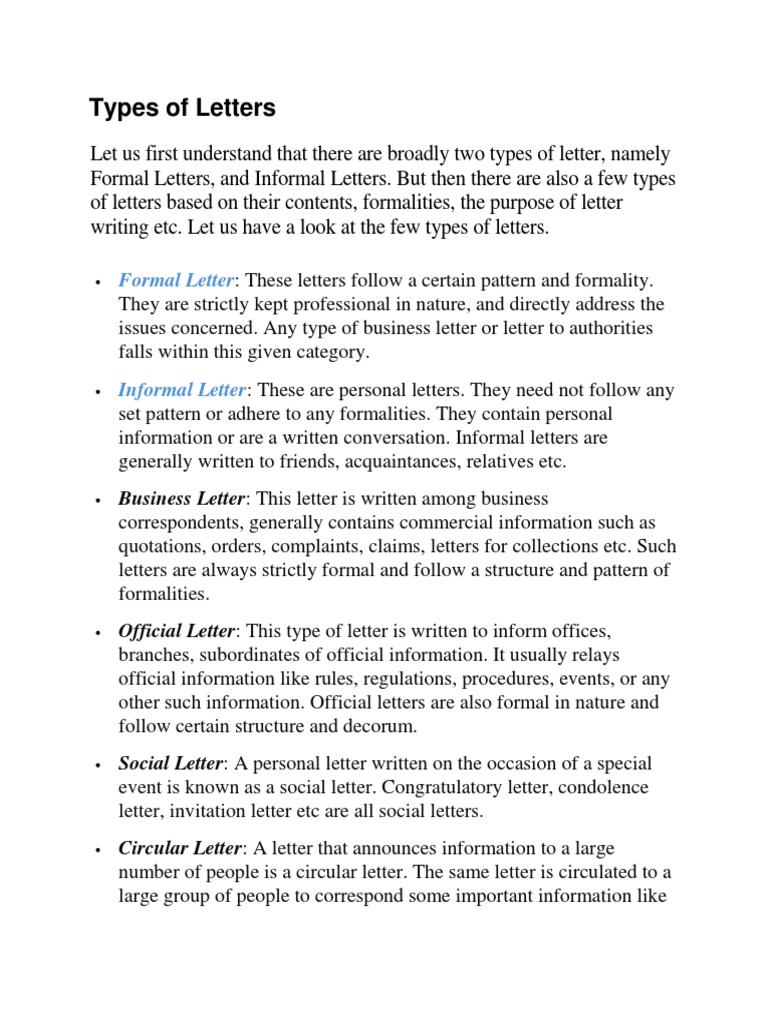 Structure of different types of letter just like any written form of communication, even letter is expected to follow a specific format, a specific structure to. Letters can be of various types: Начинают письмо обычно с фраз You should use the first person for business messages and write in the third person for all other types of formal letters. In fact, in an informal.